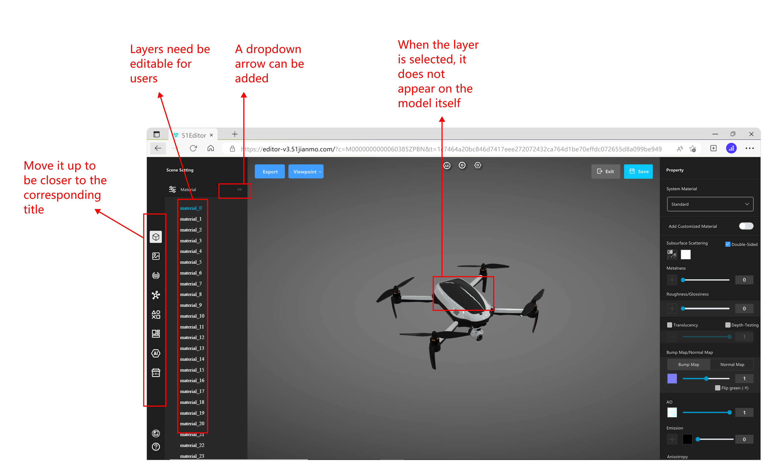 Problem: In the Materials section, users cannot organize or rename the different layers they upload, leading to potential confusion during their rendering process.