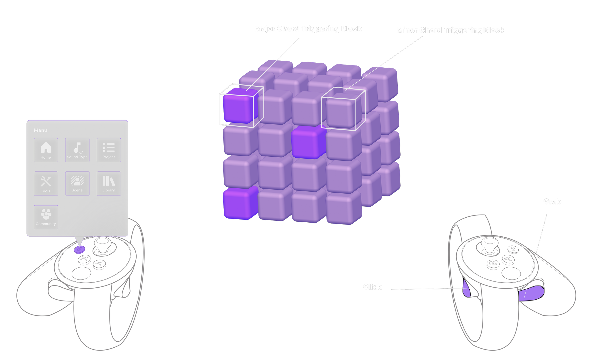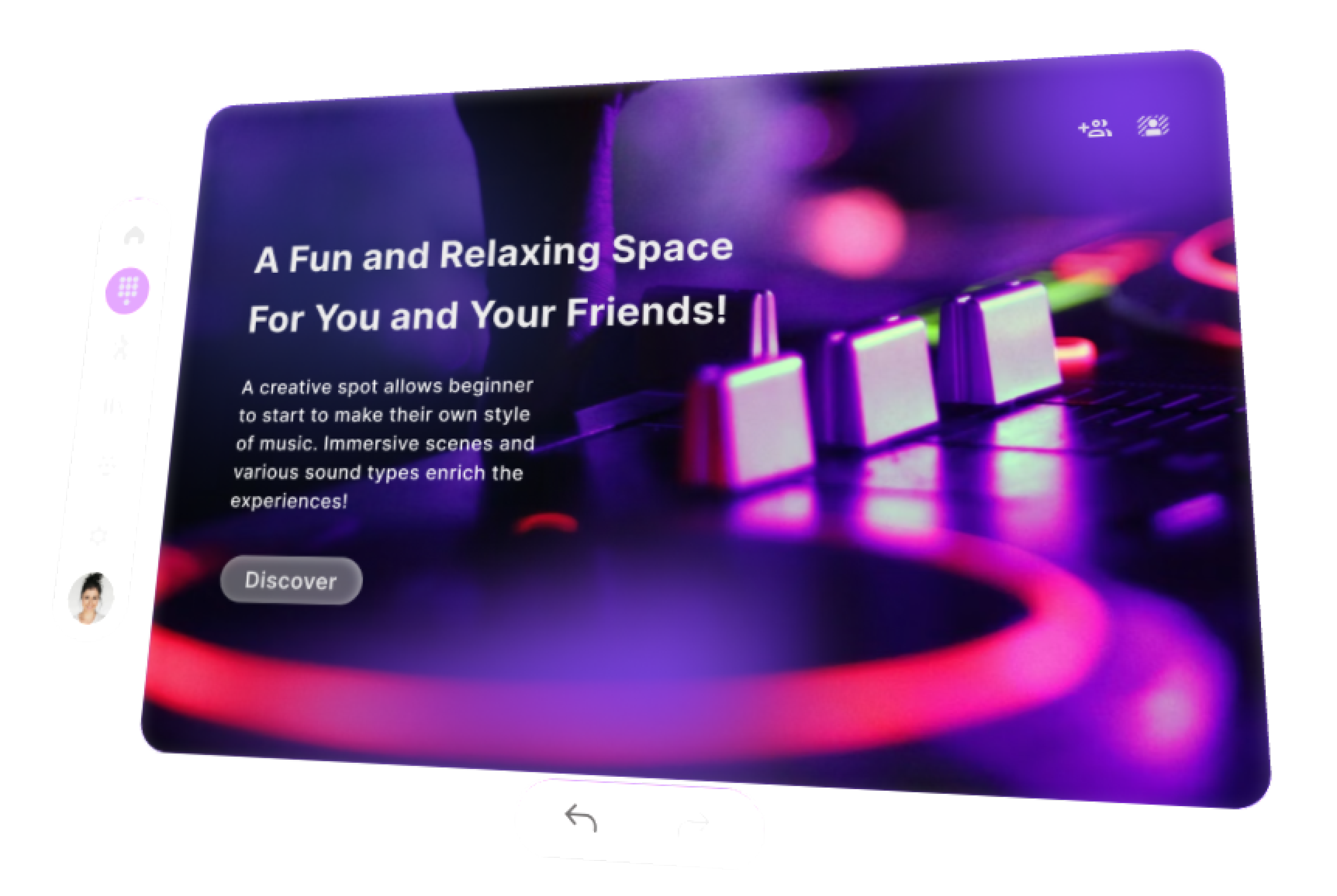 The interactive music room is a place for users to enjoy and play music and personalize their experience! This product based on the device VR aims to provide users with immersive and brand new music playing and producing experiences. More importantly, this music room is both for music beginners and non-beginners, users can directly jump into it and start playing around !