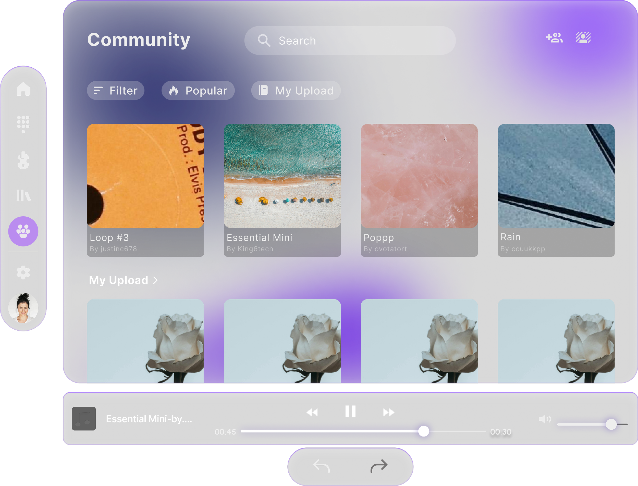 In the Community section, you can explore and listen to recordings uploaded by other users, providing inspiration and helping you discover the type of music you want to create!